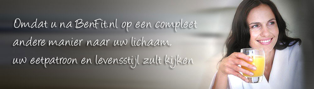 Wist u dat lichamelijke klachten vaak voortkomen uit een verkeerd voedingspatroon en te weinig lichaamsbeweging? Helaas krijgt u een gezond en fit lichaam niet zomaar, tenzij u bereid bent om uw levensstijl aan te passen. Met het BenFit programma gaat u onder begeleiding van een coach op een verantwoorde manier werken aan een gezondere levensstijl. De doelstelling is niet alleen dat u (over)gewicht kwijt raakt, maar vooral dat u ervaart wat een gezonde levensstijl kan doen voor de kwaliteit van uw leven.